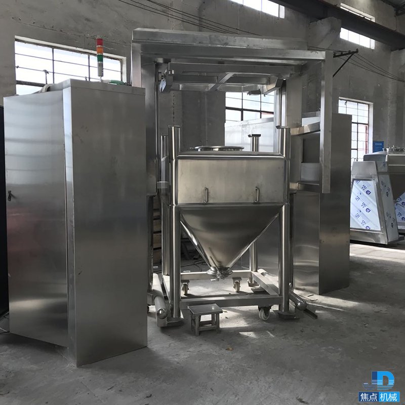 3、 混合容器:方錐型特殊的結(jié)構(gòu)形式采用優(yōu)質(zhì)不銹鋼制作,內(nèi)外表面均進(jìn)行拋光,無死角、易清洗,符合GMP要求,出料由蝶閥控制。物料在自重的作用下順利排出。無積料、無交叉污染等優(yōu)點(diǎn)。